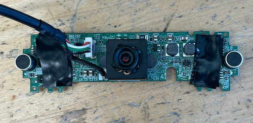 Take apart the Camera according to these instructions. Once the Camera is isolated, put 4 layers of black electrical tape over the blue LEDs on either side of the circuit board.