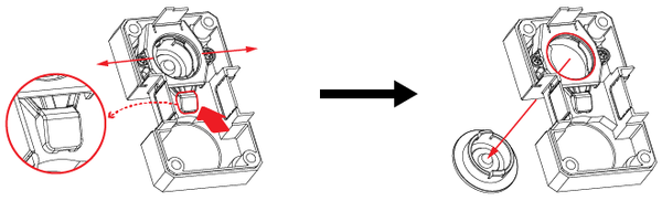 - While pushing down on the white tab, use an allen wrench to pop out black circular cover from the inside