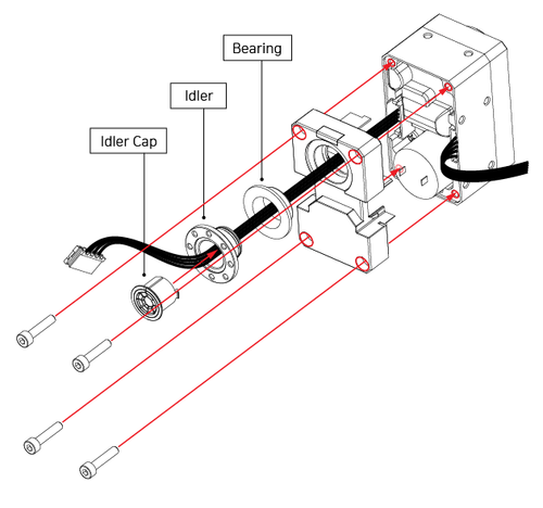 - Put screws from the idler back in the HN12-I101 Set bag, and then put them into the Servo 4 box