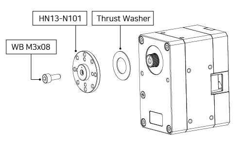 Attach included Servo Horn HN13-N101 to both XM540-W270-T Servos (Servo 2 and Servo 3) with included M3x8 screw and Thrust Washer